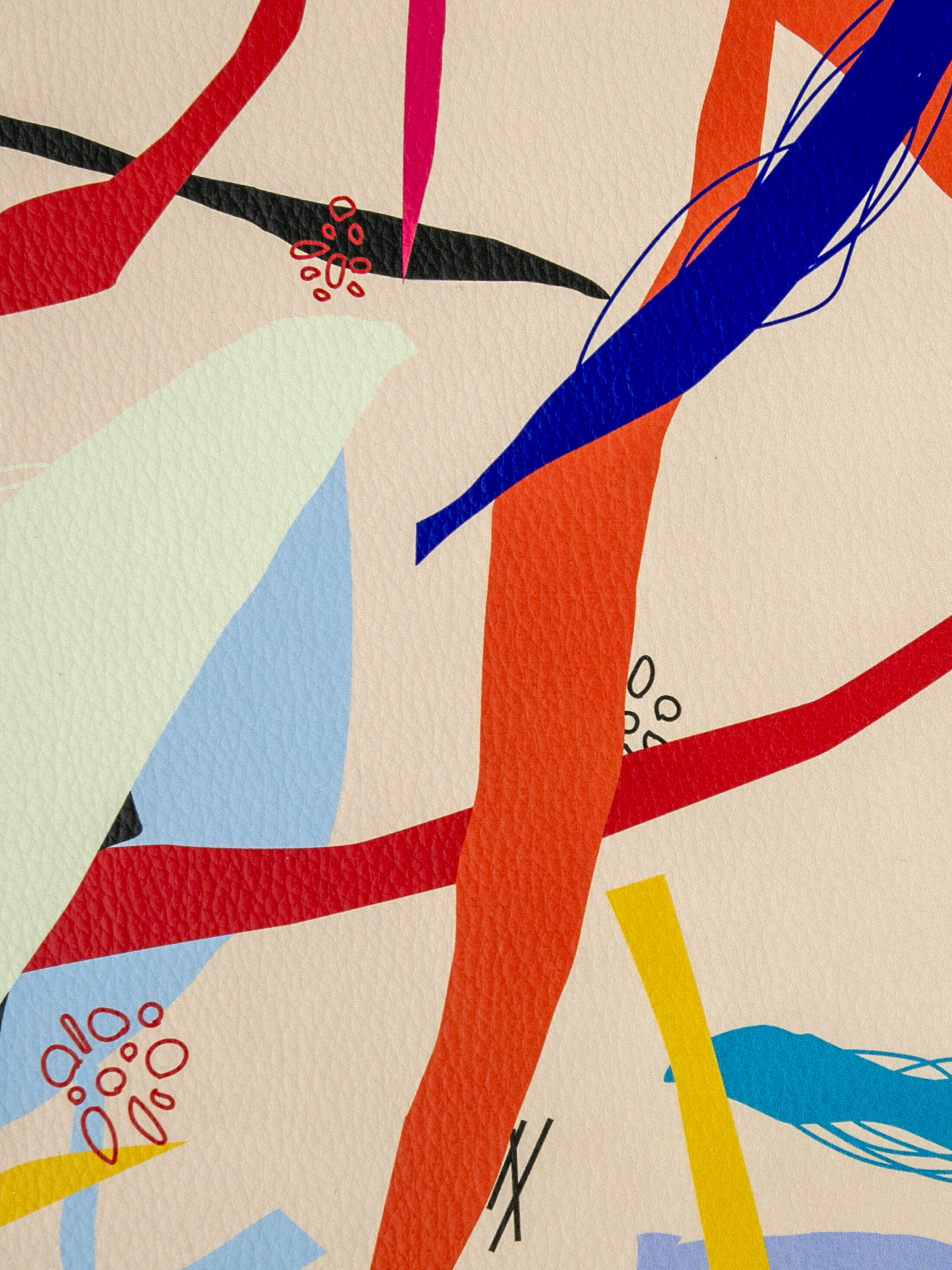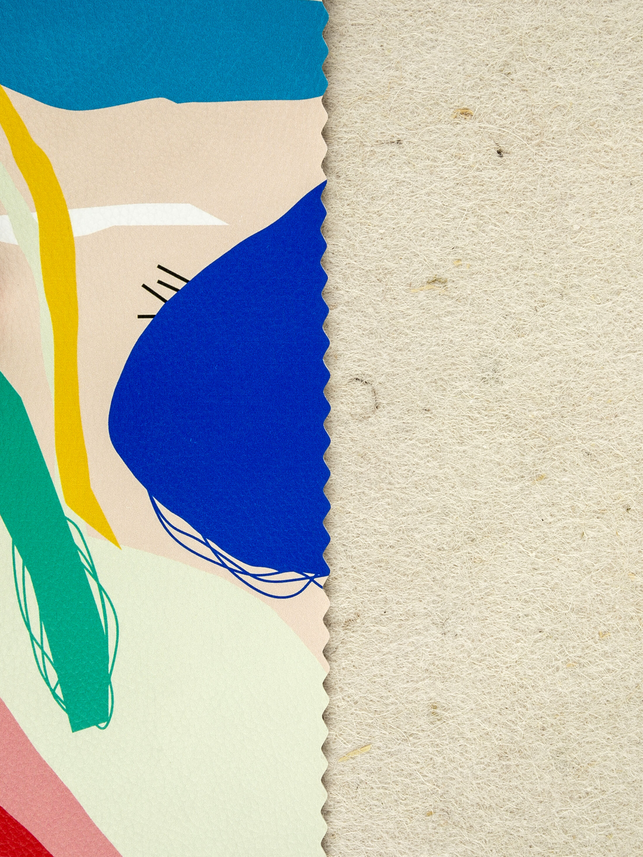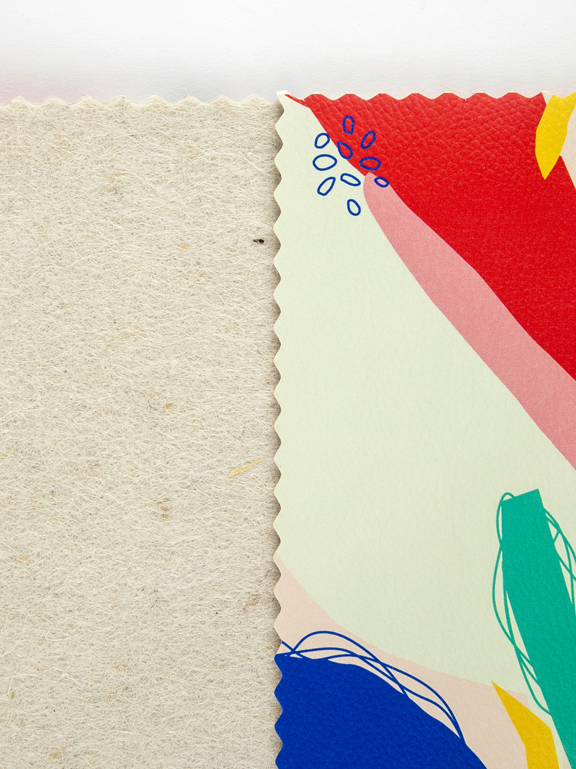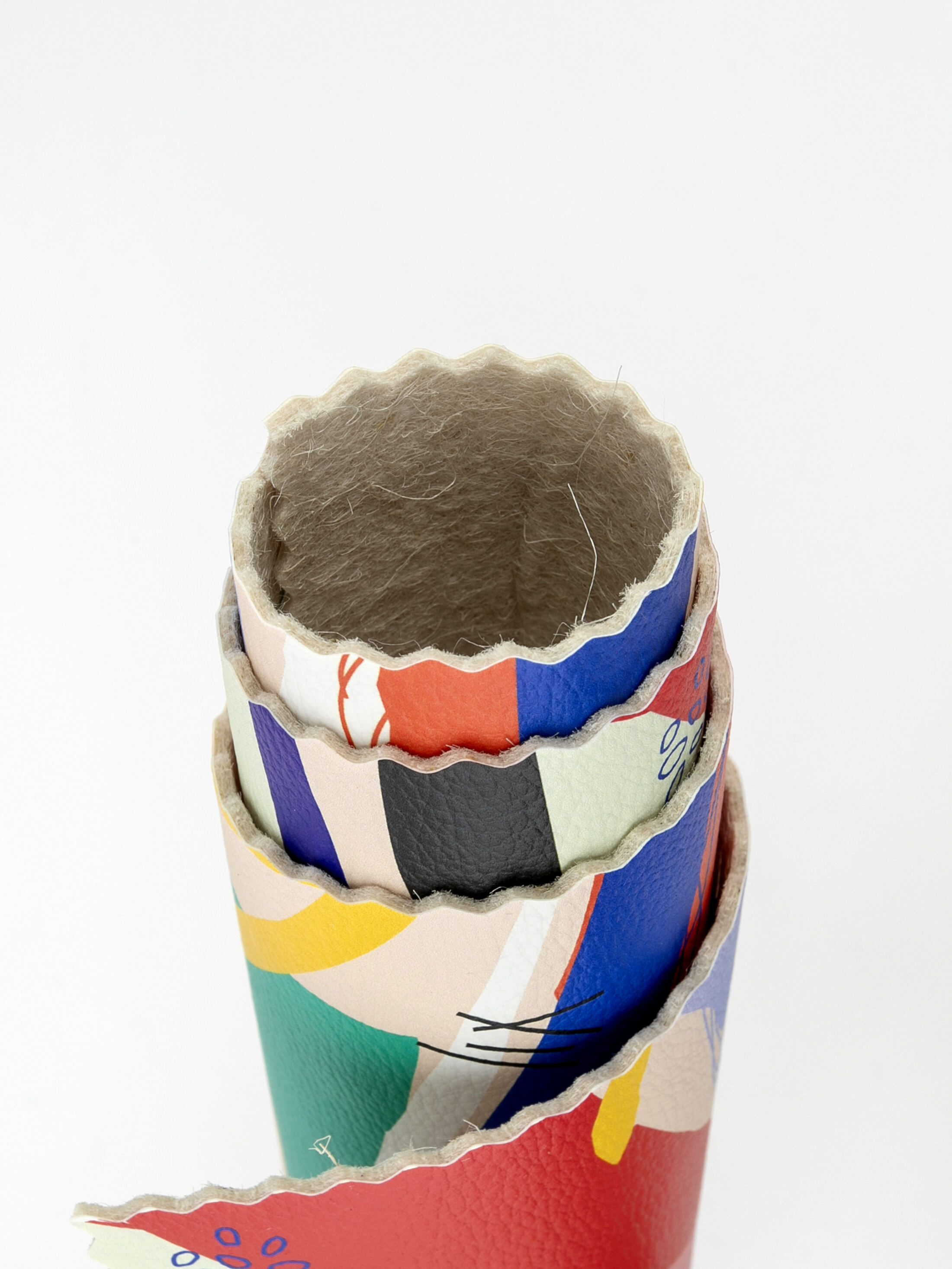Tillverkningen av vårt ananasläder metervara börjar redan på fältet där överblivna ananasblad samlas in. Fibrerna extraheras, blandas med PU och pressas till ett non-woven ark. Resultatet är ett starkt, flexibelt och helt djurfritt material som vi trycker med miljövänlig teknik för att ge dig skräddarsytt ananasläder av högsta kvalitet.