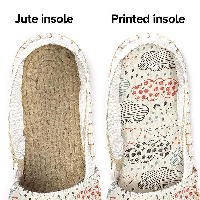 I vårt enkla onlineverktyg kan du designa dina espadriller precis som du vill. Superbekväma och stiliga skor som passar både på stranden eller ute på stan. Designa egna espadriller med dina initialer, foton eller ditt favoritmönster. För att göra dem ännu mer personliga kan du även välja mellan 9 olika färger till innertyget. Dina espadriller trycks över hela ytan med ett långvarigt och miljövänligt tryck som rikligt smälter in i tygets fibrer. Med egendesignade espadriller kommer du garanterat promenera i ett unikt par skor som ingen annan har. Testa vårt onlineverktyg redan idag och få hem dina espadriller med eget tryck inom ett par dagar på posten.