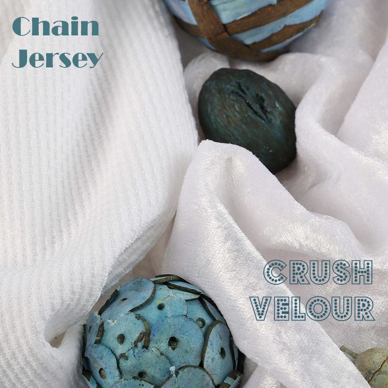 För en sportig känsla väljer du Chain Jersey – ett lätt och andningsbart tyg som faller mjukt. Om du föredrar extra glamour väljer du Crush Velour, ett stretchigt tyg med diskret glans som passar perfekt för kvällsevenemang.