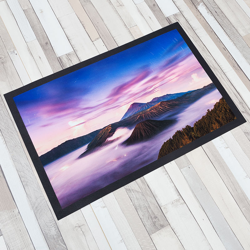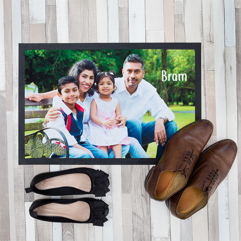 Sätt en personlig prägel på ditt hem med en egendesignad dörrmatta som får dig och dina gäster att le innan ni ens klivit in genom dörren. Dörrmattans halkskydd håller din dörrmatta på plats samt förhindrar vattenskada. När vi mottagit din beställning trycker vi din personliga dörrmatta med ett varaktigt miljövänligt tryck med rik färgåtergivning. Vår dörrmatta med eget tryck är tålig och välkomnar leriga skor och gummistövlar. Den är 2 mm tjock. Du kan enkelt tvättas den i tvättmaskin i 30 grader för att hålla den snygg och ren.