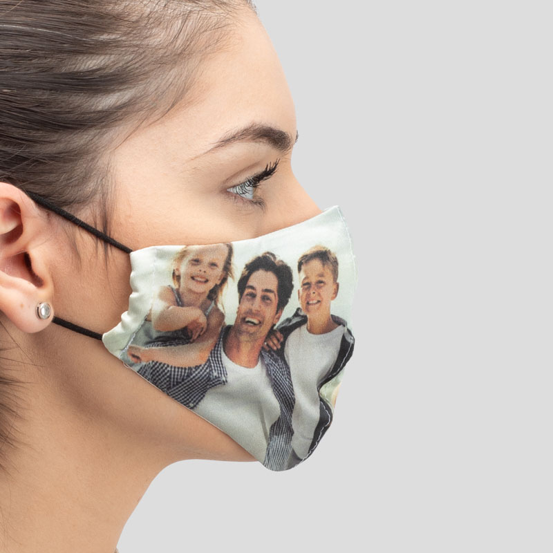 Din sidenansiktsmask med foto är gjord av rent siden av superhög kvalitet, vilket bär med sig en del fördelar. Eftersom siden är så pass mjukt och smidigt förebygger det friktion och den irritation som det ofta innebär att ha på sig en mask hela dagen. Detta allergivänliga tyg är perfekt för dig med känslig hud, och då siden absorberar mindre fukt än andra tyger kommer det inte heller torka ut din hud. Siden är naturligt andningsbart och svalkande så du kommer att kunna andas och gå utan problem. Du kommer inte heller ha problem med att tyget gnider sig mot huden eller blockerar dina luftvägar. Din mask har enkelt justerbara öronöglor för högsta komfort, och en flexibel näsbrygga som minskar risken för att dina glasögon blir immiga. Den är så bekväm att du kanske börjar se fram emot att ta på dig masken.