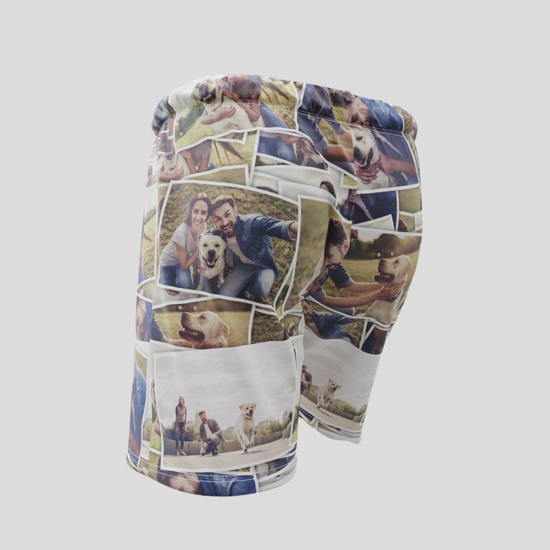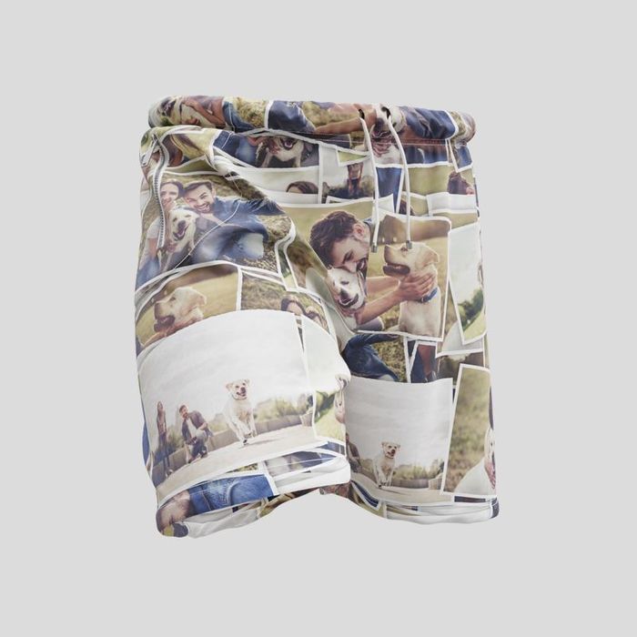 Dina shorts kan skräddarsys med dina foton och minnen. Du kan välja att trycka ett foto på varje ben, olika bild på fram- och baksidan, eller om du inte kan bestämma dig för en favoritbild så kan du skapa ett helt fotocollage i vårt lättanvända designverktyg.