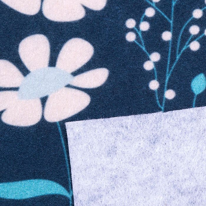 Ett medeltjockt, mjukt och stretchigt material med borstad/knäppt yta. Ogenomskinligt och fluffigt.