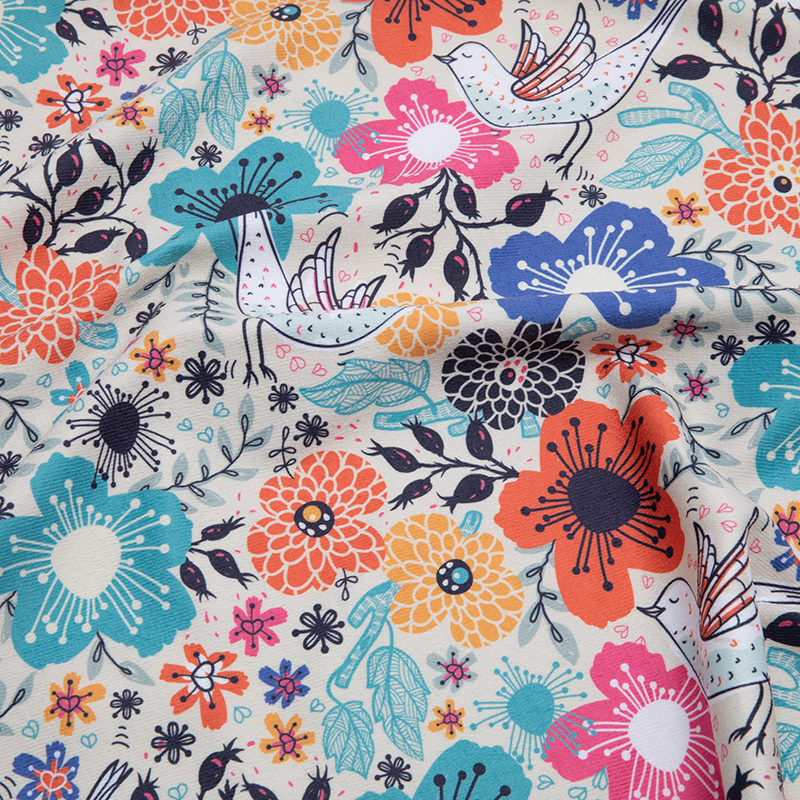 Organza är en magisk textil med en gnistrande rätsida och vacker transparens. Vi trycker din utvalda design med vår innovativa tryckmetod med reaktiva färgämnen som binds på molekylnivå till textilens fibrer. Organzatyget väger 40 gsm och är lätt, mjukt, skirt med ett mjukt fall. Klicka på knappen "Starta Design" för att designa ditt eget organzatyg. Med ditt egen designade organzatyg så kan du skapa fantastiska festdekorationer till bröllop och dop, skira gardiner, halsdukar, underkjolar m.m.