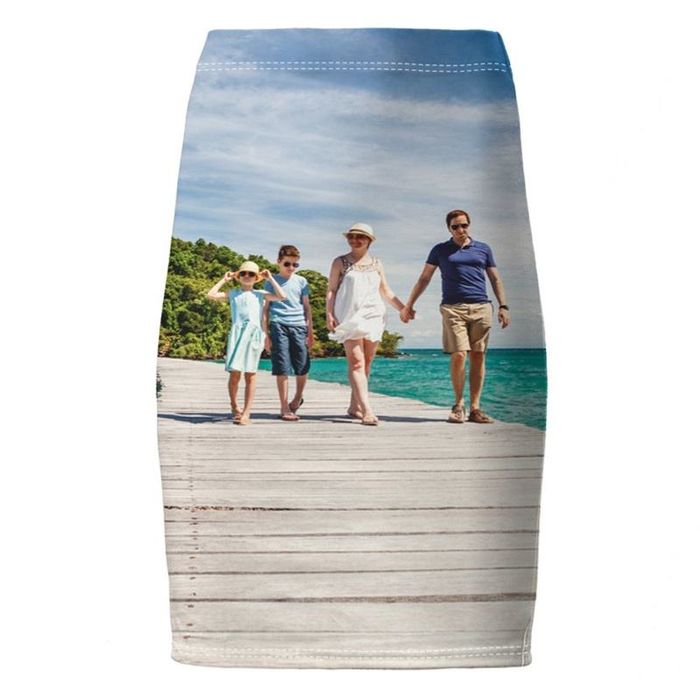 Vi trycker din personliga design rakt på tyget. Därefter klipper vi ut det i rätt form och storlek och syr ihop det för hand. Detta garanterar att din personliga design trycks med fullt färgtryck från kant till kant. Eftersom alla dessa pennkjolar tillverkas på detta vis så kan du vara lugn att alla detaljer är som du vill ha dem. På grund av fåll och att plagget sys för hand så kan måtten avvika något från de angivna.
