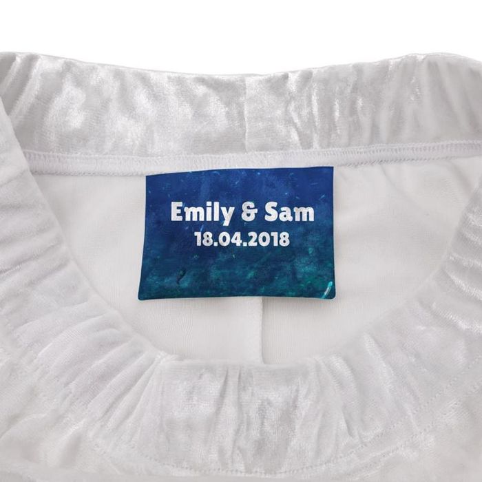 Designverktyget låter dig välja mellan svart eller vit tråd på dekorationssömmen och även om du vill ha en personlig etikett eller inte på din kjol. Etiketten är helt valfri och om du väljer att ha en så kommer designverktyget lägga till en panel så att du kan designa den. Varje etikett är lika unik som plagget den sys fast på så du kan skräddarsy den med ett personligt meddelande, vilket är perfekt om du tänker ge bort kjolen du designar.
