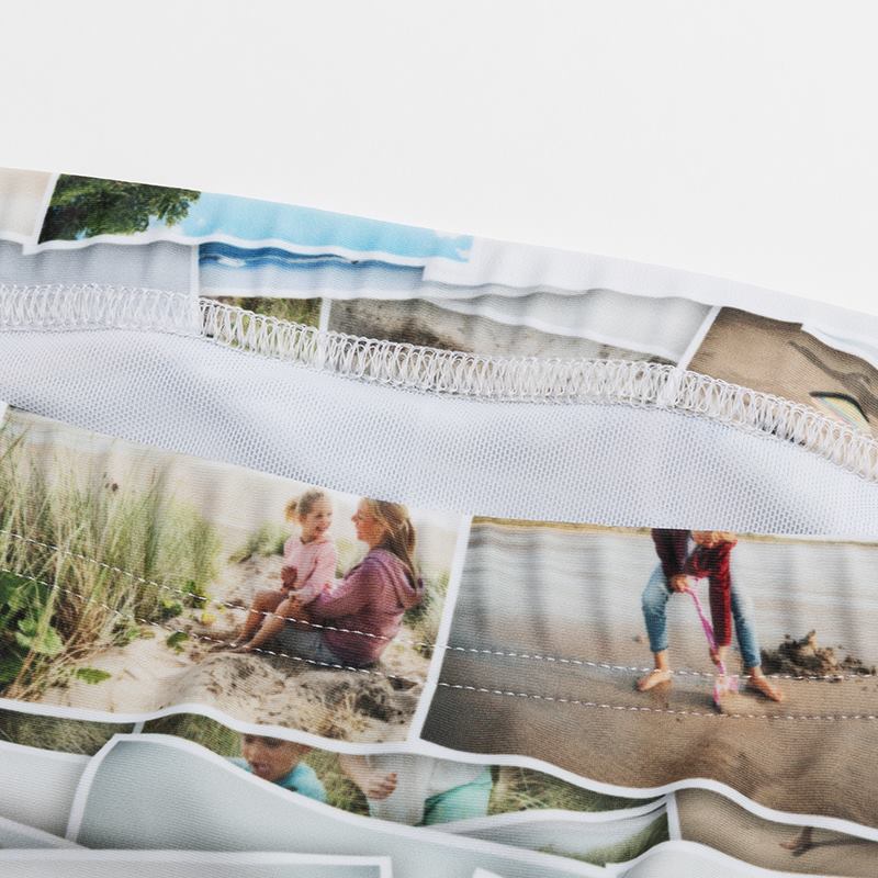 När du designar din personliga bandeau-topp så är det viktigt att du uppmärksammar utfallsområdet upp- och nedtill. Se till att du inte placerar några viktiga detaljer av ditt foto eller text nära utfallsområdet då det kan komma att försvinna in i sömnen.
