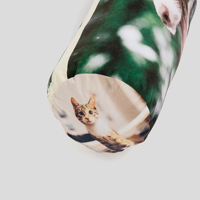Våra fotokuddar utgör en underbar present till dina nära och kära. Vi kan garantera att de aldrig sett en bolsterkudde som denna innan – personlig, handsydd och skickad inom två arbetsdagar. Om du är på jakt efter en personlig present så är vår cylinderformade kudde med eget tryck helt perfekt. Varför köpa vanliga kuddar i affären när du nu kan designa en fotokudde 100% online.