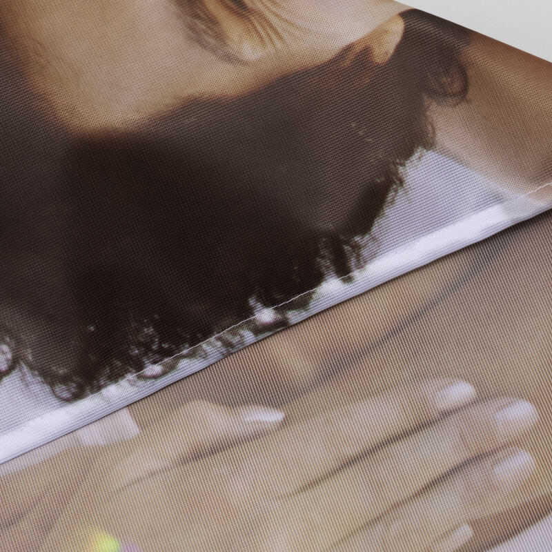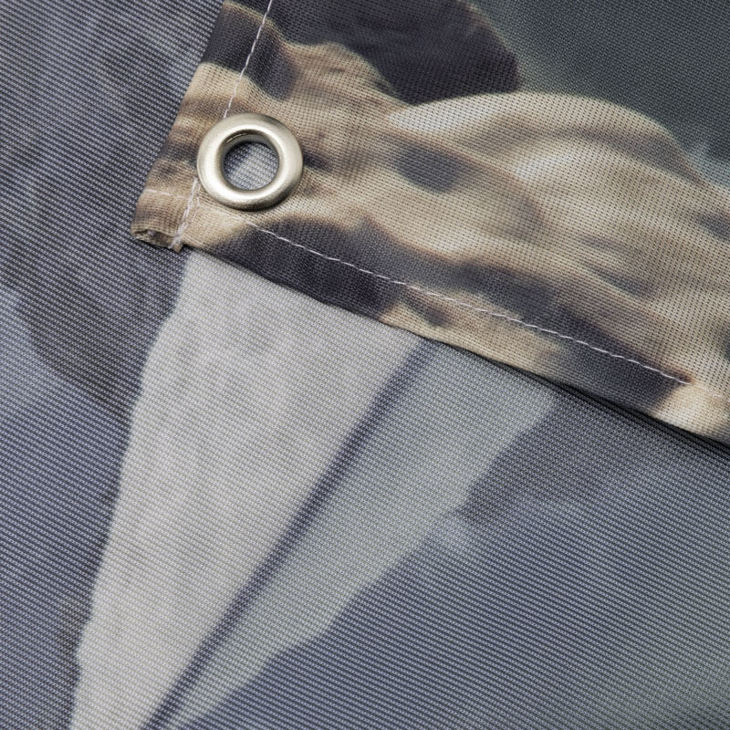 Standardfinishen har fållade kanter med dubbelsömmar för extra styrka. Du kan välja antingen två öljetter på vänster sida eller fyra – en i varje hörn. Om du föredrar en flaggstångsmontering erbjuder vi 2,5 eller 5 cm stångfickor som passar din visningsuppsättning. För överlägsen motståndskraft i hårt väder, välj vår tejphuvud med öljetter, som ger den säkraste och mest hållbara fastsättningen. Alternativt erbjuder vårt sömfria alternativ, endast klippning, ett budgetvänligt val – perfekt för drapering, handhållen användning eller vardagliga visningar.
