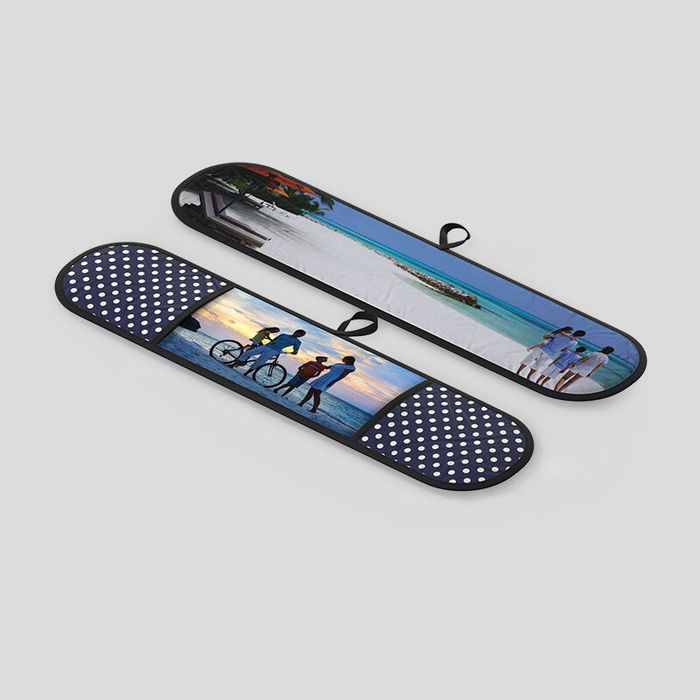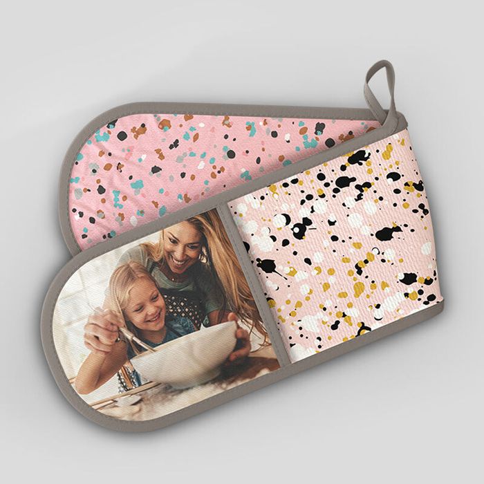 Beställ personliga grytlappar med namn till familjens kock, eller skapa anpassade ugnsvantar med ett roligt citat till vännen som älskar bakning. De fyra tryckytorna gör det enkelt att kombinera foton, logotyper och mönster.