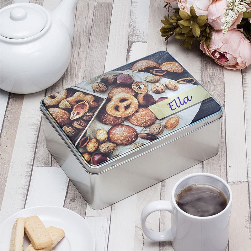 Fikastunderna kommer aldrig mer bli de samma med våra fina personliga kakburkar med foto. Med ett tryck av hög kvalitet och gångjärn på kakburkens lock blir burken en både snygg och bra förvaringslåda för dina kakor i köket eller på kontoret. Du kommer nästan önska att du hade ett lås på den! Skapa en kakburk med tryck redan idag hos oss och få den levererad innan du vet ordet av det. Kakor ingår ej men det är något som vi jobbar på.