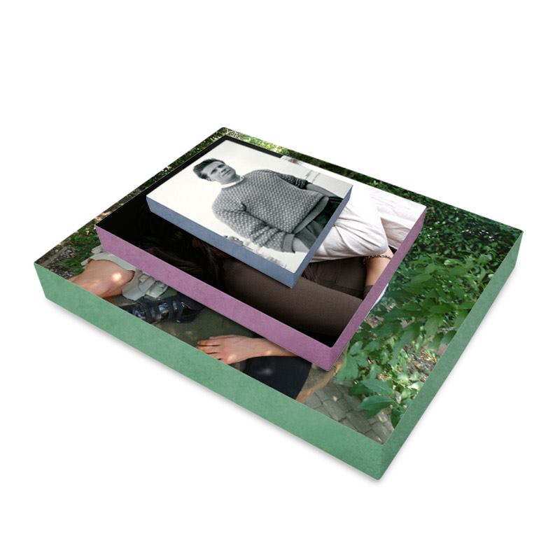 Förvara och presentera din fotobok på ett snyggt sätt med våra fotobokslådor. Din personliga låda tillverkas av FSC-certifierat trä som täcks med högkvalitativt fototryck på Suede Vision tyg. Klicka på knappen "Starta Design" här ovan för att komma till vårt enkla onlineverktyg. Du kan välja mellan olika storlekar; A5, A4 och A3. Storlekarna som listas är insidans storlek. Förvara dina älskade fotoböcker och minnen en personlig låda.