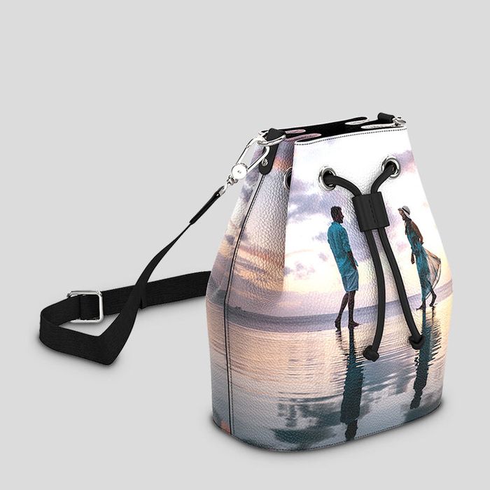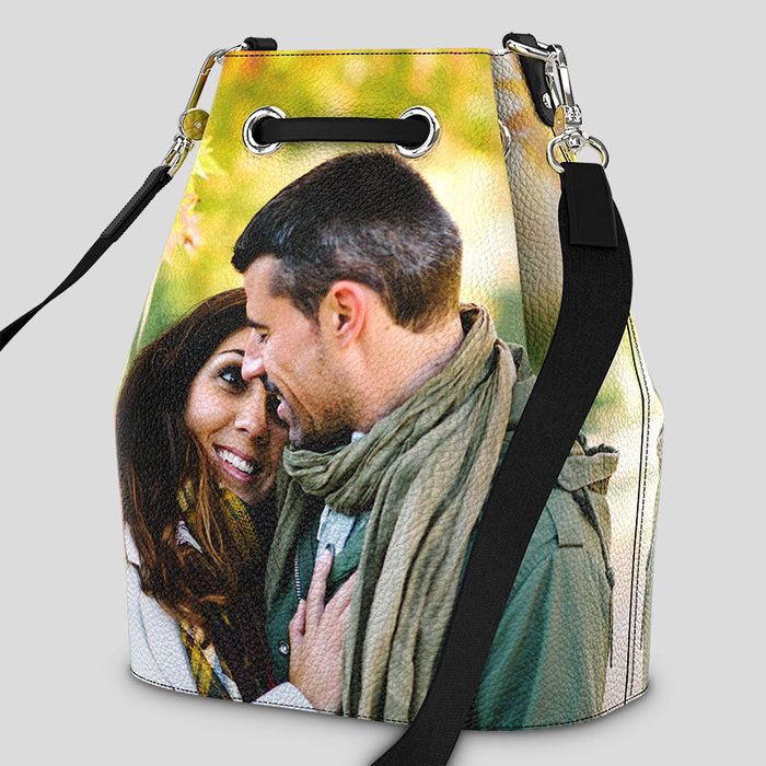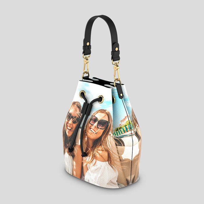När du designar din handväska med tryck, så håll i åtanke hur lädret samlar sig runt toppen för öppning och stängning. Om du använder ett foto eller en design med viktiga inslag (som t.ex. ansikten) så se till att inte kommer döljas eller skrynklas ihop när väskan stängs. Vi rekommenderar att hålla dessa viktiga inslag i mitten av väskans fram-eller baksida så att de alltid syns.