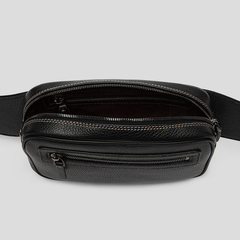 Låt kreativiteten flöda när du gör din magväska. Du kan välja mellan lent eller texturerat läder och du har fyra ytor att designa och trycka, och du kan välja färg på sömmarna och metalldetaljerna. När du använder 3D-förhandsgranskningen i designverktyget så kan du flytta runt kameran och se din väska från alla tänkbara vinklar. När du designar din väska, tänk på att dragtapparna, passpoalbanden, baksidan och delarna närmast remmen alltid kommer vara av lent, svart Nappaläder. Om väskan är en present, varför inte ladda upp bilder och text som verkligen gör väskan personlig och passar den tänkta mottagaren? Om de äskar att reda så kan du till exempel trycka den med en bild som påminner dem om hemma.