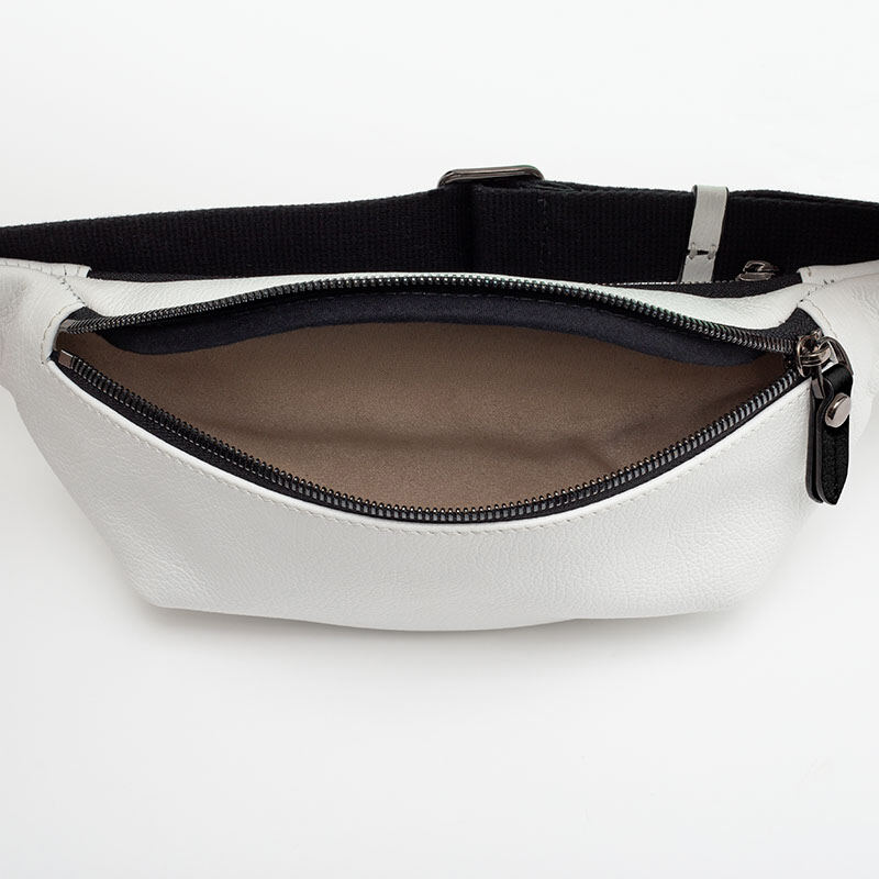 Den justerbara remmen låter väskan sitta tajt runt midjan eller bäras över kroppen. Det lena eller texturerade Nappalädret ger väskan den snygga läderlooken samtidigt som det är en perfekt målarduk för skarpa, ljusa och långvariga tryck.