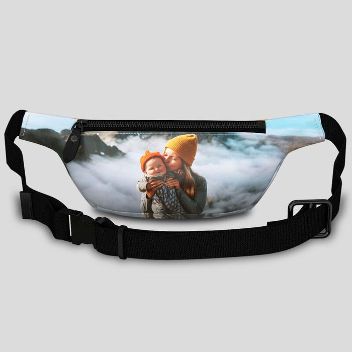 Oavsett om du vill skapa en midjeväska med foto eller en midjeväska med namn har du full kontroll. Din midjeväska tillverkas av Nappaläder, som är ett mjukt, fullnarvigt 100 % äkta läder. Vi rekommenderar att du gör blixtlåsen till en del av din design, då de har en remsa av lent nappaläder. Båda lädertyper ger en utmärkt grund för skarpa och stora färgscheman. Du kan också skräddarsy blixtlåsen med guldig, silvrig eller blågrå metall och välja färg på sömmen. Med så många alternativ kan du garanterat skapa en helt personlig och unik midjeväska som trycks med miljövänliga färgämnen och tillverkas på beställning, vilket sparar tusentals ton material varje år. Väskan är 13 x 33 x 8 cm och erbjuder en kompakt och lätt design, samtidigt som den har tillräckligt med plats för dina viktigaste ägodelar. Remmen är gjord av sadelgjordsväv och är helt justerbar.