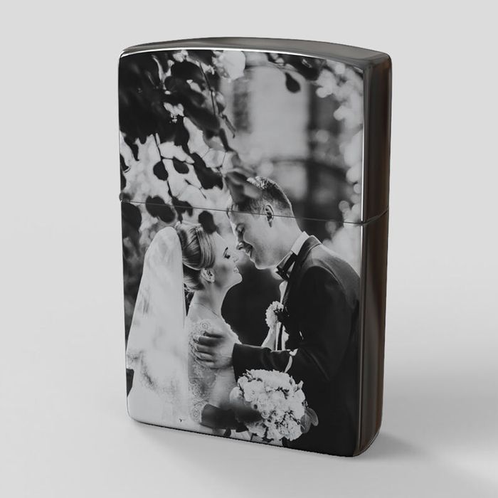 Vi trycker din design med den senaste trycktekniken, vilket resulterar i ett långvarigt tryck på din personliga tändares framsida. Din tändare med foto kommer att kunna hänga med dig för evigt då den är påfyllningsbar. Den kommer att bli en trogen vän, som alltid fungerar i väder och vind med sitt klassiska flip-lock och tåliga låga. Zippo® tändaren levereras i en presentask och är en perfekt personlig present. Den är även enkel att skicka då paketet är litet och smidigt..
