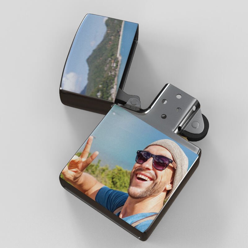 Våra tändare med egna foton är äkta Zippo®-produkter med rundade hörn. Påfyllningsbara, pålitliga och rekommenderade tändare från Zippo® som levereras i presentask.