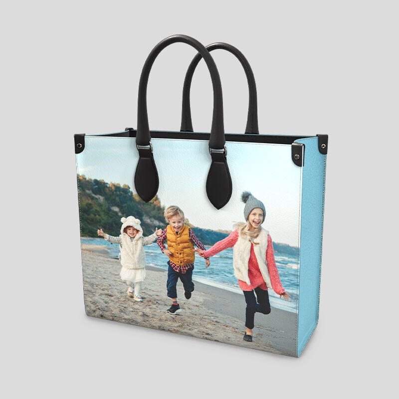 Den personliga väskan har gott om utrymme att släppa lös kreativiteten på. Det är viktigt att du använder bilder som är lämpliga för den större storleken, till exempel, om en bild har låg kvalitet så kan den bli pixelerad när den förstoras upp för att täcka väskan. Likaså, bör du även se till att små detaljer kan synas om du väljer den mindre storleken. Vi rekommenderar att du använder högupplösta bilder. Du kan till och med specialanpassa färgen på sömmen, och välja mellan gräddvit, grå, eller kolfärgad söm, samt färgen på metallen; blågrå, nickel, eller guld.