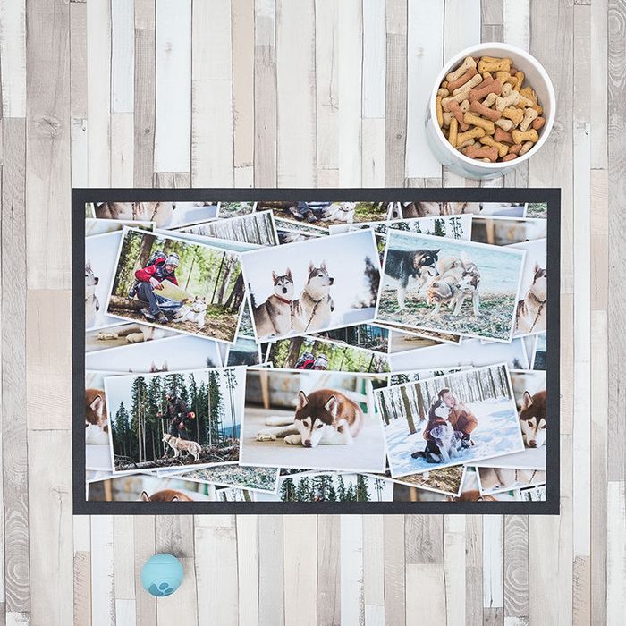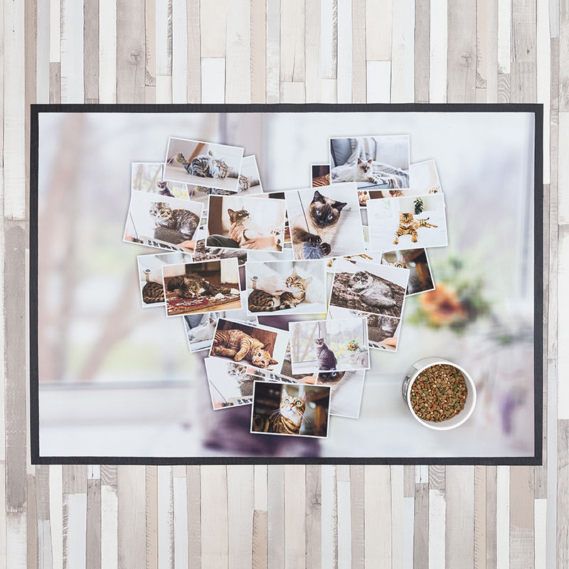 Gör din egen husdjursmatta till din katt eller hund. Du kan använda mattan i köket för matskålen eller entrén. Husdjursmattans baksida består av gummi vilket håller mattan stadigt på plats. Ladda upp dina foton, mönster eller text och placera ut din design som du vill på husdjursmattans tryckyta. Släpp lös din kreativitet och designa din egen husdjursmatta. Du kan till och med designa ett fotocollage om du har alltför många foton att välja mellan.