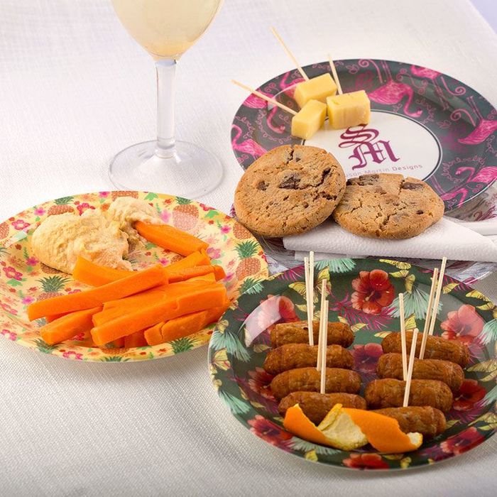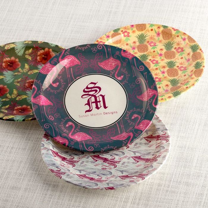 Den slitstarka plasten vi använder ger ett tydligt och vackert tryck, så starka färger kommer verkligen att framträda. Dessa plasttallrikar för fester är inte helt platta, utan lite djupare för att hålla ordning på buffébordet och göra det enklare att servera mat som chips.