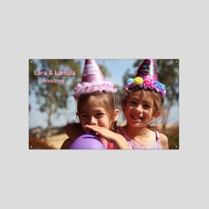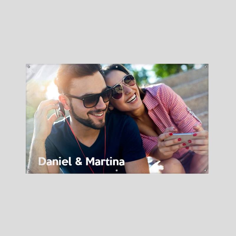 Lägg till foto, namn eller logga och beställ en personlig utomhusbanderoll i vattenavvisande, slitstarkt m... Mer information