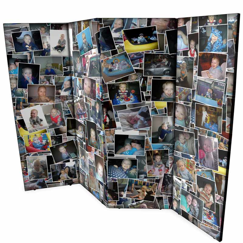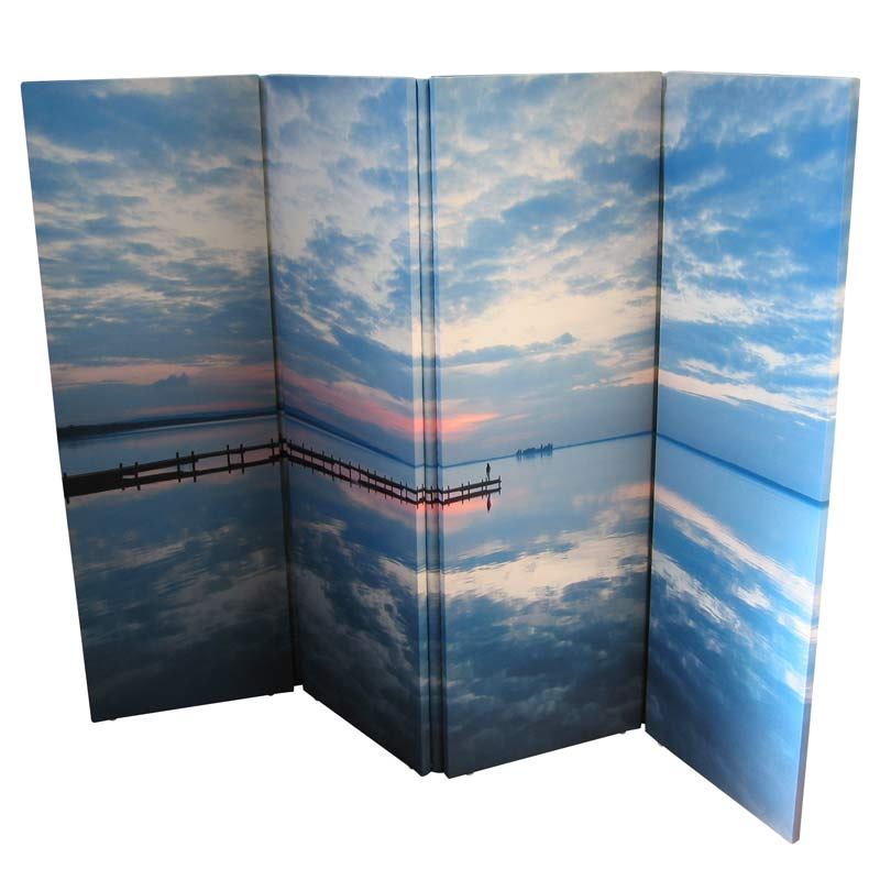 Vår personliga vikvägg har inga glapp eller gångjärn som är i vägen för din design. Vikskärmen trycks över hela ytan utan avbrott. Trycket följer formen av vikväggen som är uppbyggd i paneler på en stabil ram. Vi använder oss av den senaste trycktekniken vilket resulterar i ett långvarigt och färgrikt tryck. Dina foton trycks med knivskarp skärpa med rik färgåtergivning. Din vikvägg med eget tryck kommer att bli en del av din inredning och den kommer garanterat att imponera på dina gäster. Vikskärmen har en fin sicksack-form vilket innebär att det nästan blir en tredimensionell känsla. Vi trycker vikskärmen på båda sidorna med din design. Den är enkel att flytta runt och kan vikas ihop helt platt, vilket gör den smidig att förvara.