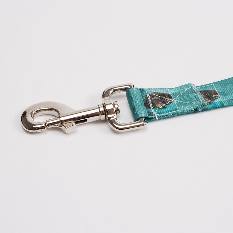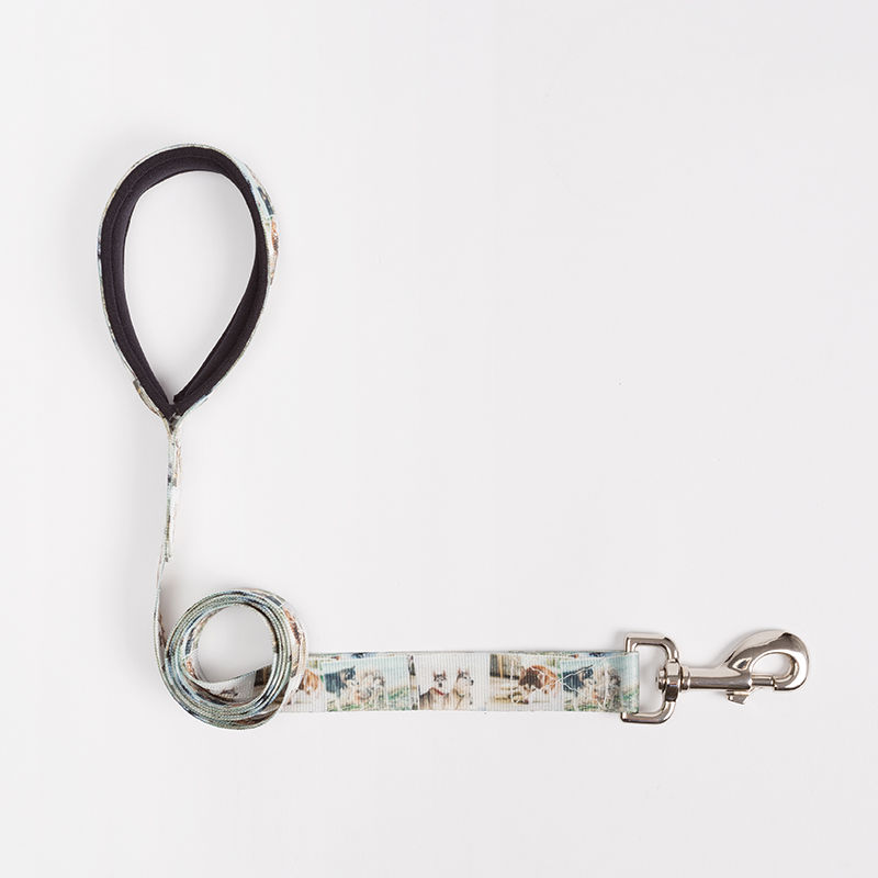 Vårt hundkoppel med eget tryck kommer med ett neopren vadderat handtag för extra komfort. När din hund drar i kopplet kommer det mjuka neoprenet som sytts runt handtaget att ge skydd och extra komfort. Hundkopplet är 130 cm långt och tillverkas av slitstark vävd polyester med en metallhake. Hundkopplet är tillräckligt starkt för att hålla även de vildaste och promenadglada hundarna. Den vävda polyestern passar väldigt fint för tryck av foton, text eller mönster. Om du vill hålla det enkelt och elegant kan du göra ett hundkoppel med namn och ta ut din vovve på promenix med ett personligt hundkoppel. Släpp lös din kreativitet i vårt onlineverktyg och designa ditt egna hundkoppel i ett par klick.