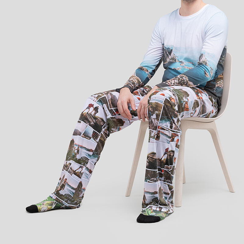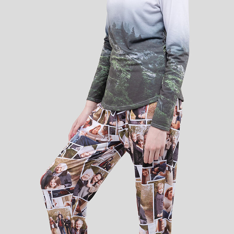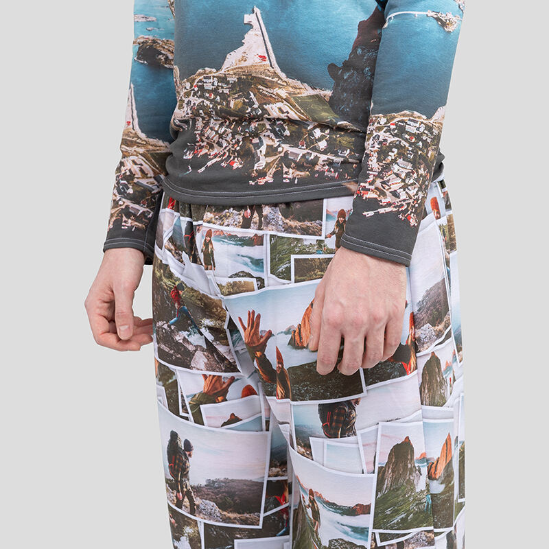 Ditt personliga pyjamasset blir handgjort efter beställning med dina fotografier och fantastiska designer. Pyjamasen tillverkas av tyget Soft Fashion Jersey som är en poly-elastanblandning som perfekt balanserar tjockt och gosigt med andningsbart och luftigt. Vårta tryckexperter trycker din design med den senaste tekniken för digitala tryck som för in miljövänligt bläck djupt in i tygets fibrer, vilket skapar ett tryck som inte känns och som varar länge. Detta innebär att din pyjamas med tryck är precis så mjuk och skön som du hoppats på, helt utan att du känner trycket igenom plagget eller med händerna.