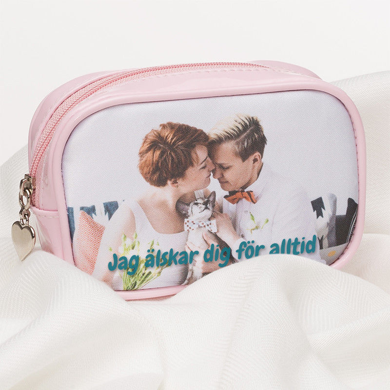 Vi vet alla att det inte är det enklaste att hitta personliga presenter. Men med Bags of Loves breda sortiment av fotopresenter blir det genast lekande lätt. Designa en portmonnä med foton och ett romantiskt meddelande till din partner för en personlig present till födelsedag eller årsdag. Välj ut nostalgiska minnen från din barndom och överraska dina föräldrar på mors- eller fars dag med en personlig portmonnä. Vår börs med eget tryck är inte bara till för mynt den kan användas till alla småsaker som ligger löst i väskan eller som ett kamerafodral.