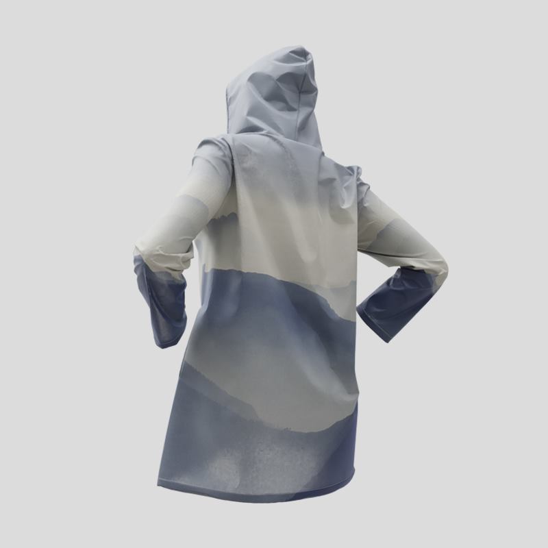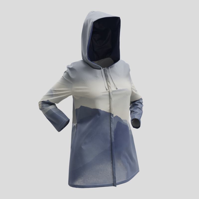 När du har lagt din beställning trycker våra experter din design digitalt med miljövänligt bläck som tränger djupt in i fibern för ett hållbart resultat. Därefter skärs tyget ut enligt vårt exklusiva mönster och sys ihop för hand av vårt skickliga team. Den skräddarsydda processen säkerställer en perfekt passform och en regnjacka som är lika unik som du.