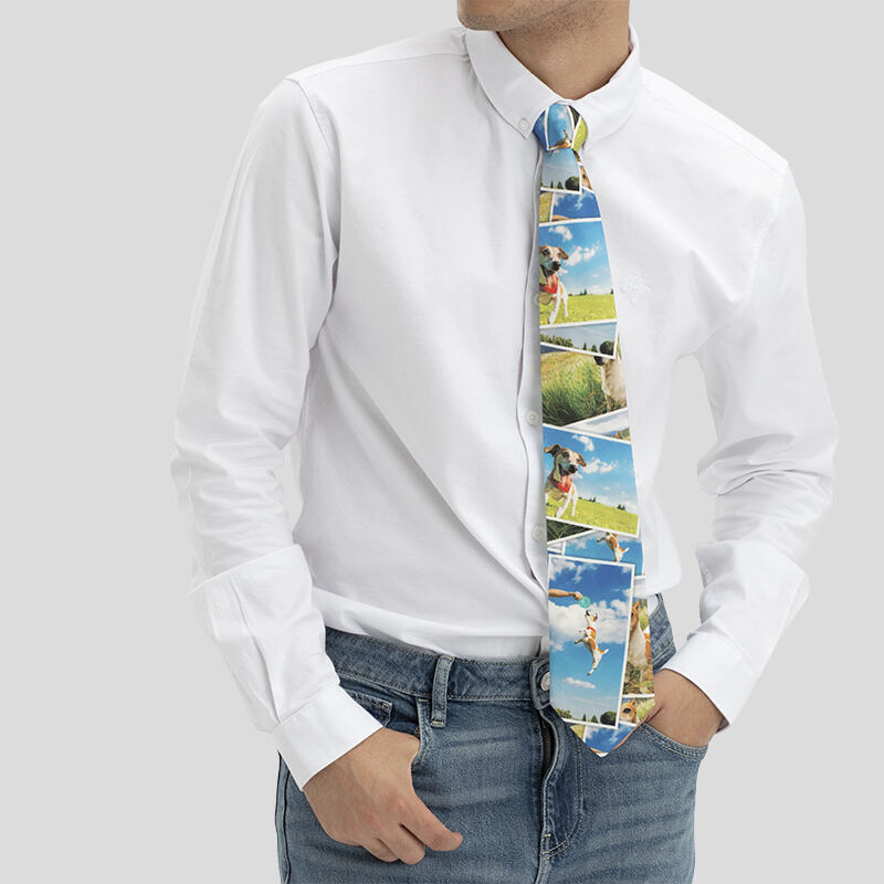 Ge den arbetsbesatte något att tänka på nästa gång han sitter i möte, med en slips tryckt med era favoritminnen. Vad kan vara bättre än att drömma sig bort till senaste solsemestern medan man sitter fast i ett tråkigt möte? Detta är en perfekt Fars Dag-present för barnen att designa själva, du kan till och med trycka kylskåpsteckningarna på slipsen. Ta helt enkelt en bild och ladda upp den i designverktyget, så är du igång med att skapa en helt unik slips.