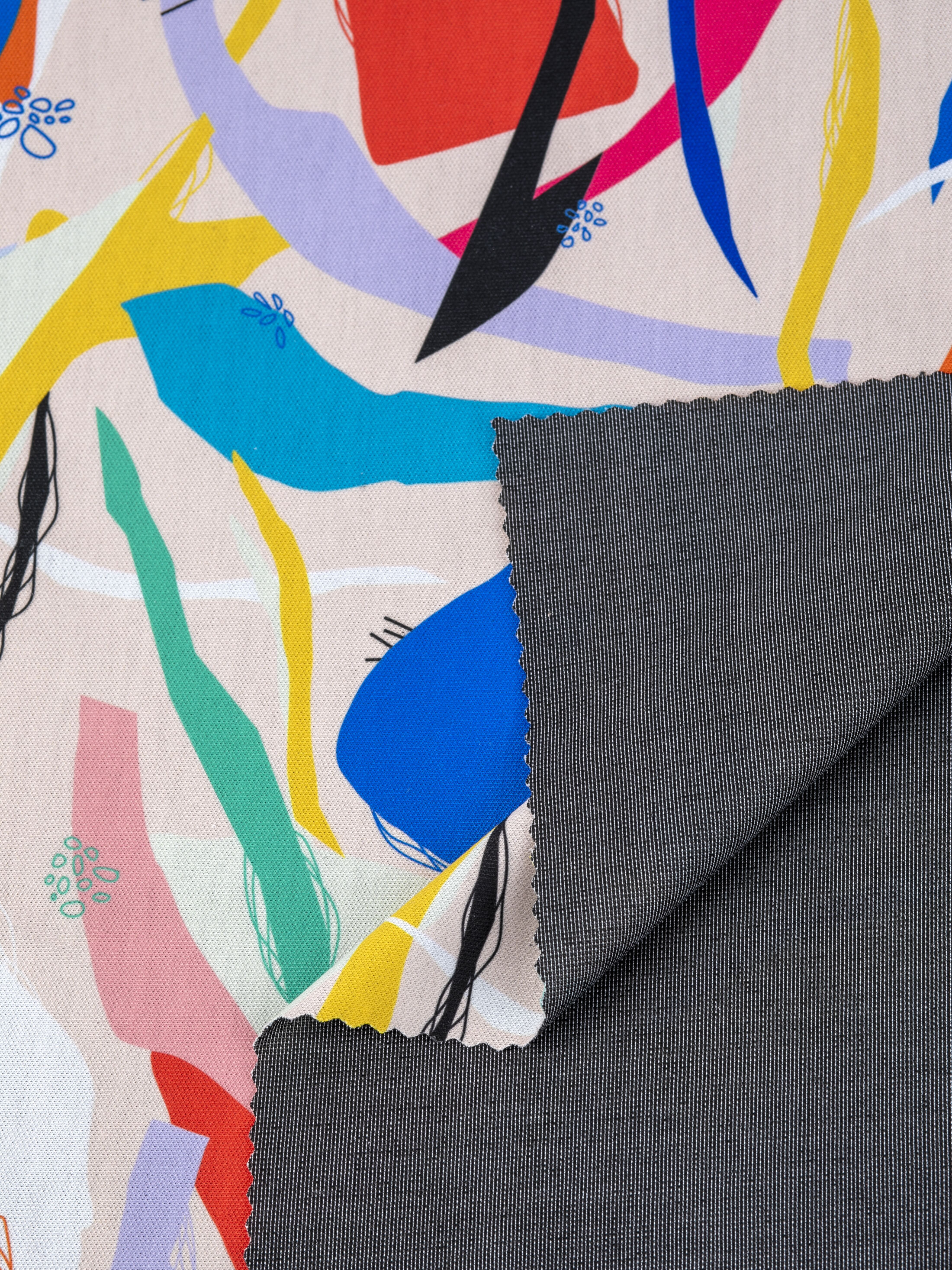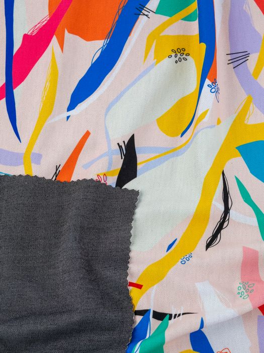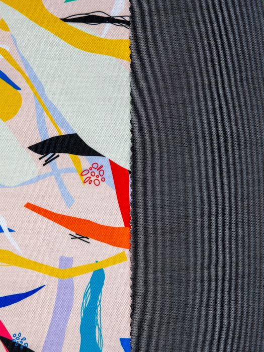 När du designar med vårt tryckta Ponte-tyg, kom ihåg att den maximala utskriftsbredden är 1,55 m. Sublimeringsbläck skapar djärva, blekningsbeständiga utskrifter, men ljusare färger kan verka något dämpade på den svarta insidan. För bästa resultat, använd starka, kontrasterande färger som sticker ut mot det fylliga bastyget.