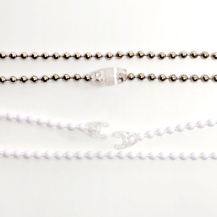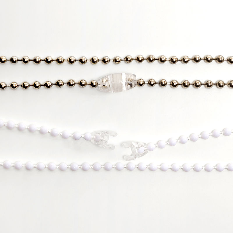 Vi levererar alla persienner med ett lättmonterat säkerhetsklämma. Tryck bara den sista kulan på varje sida av persiennsnöret i varje ände av säkerhetsklämman; det ska höras ett klick. För att ansluta de båda delarna av säkerhetsklämman, tryck bara ihop tills det ger ifrån sig ett snäppljud. Detta kommer nu att göra din rullgardinsnöre till en ögla som kommer att lossna när den dras för hårt. För att undvika detta när du öppnar och stänger persiennen, se till att du drar försiktigt i snöret medan du för snöret med händerna.