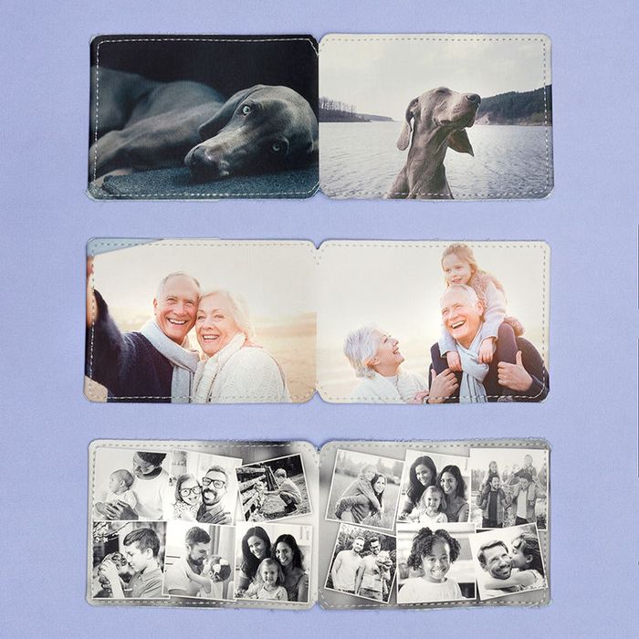 Skapa en stilren layout med ditt val av monogram eller initialer för en elegant korthållare. För en klassisk känsla kan du välja kontrastfärger. Vill du sticka ut? Låt oss trycka ett vackert foto för en unik design. Du har även möjlighet att placera företagets logotyp för att ge en professionell touch. Genom att designa varje sida separat har du friheten att anpassa korthållaren helt efter din stil.